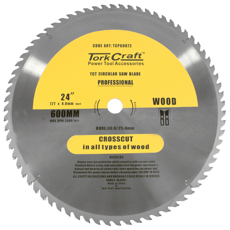 Tork Craft Tct Saw Blade Rip & Cross 600x72t 40/30/25.4/20/16