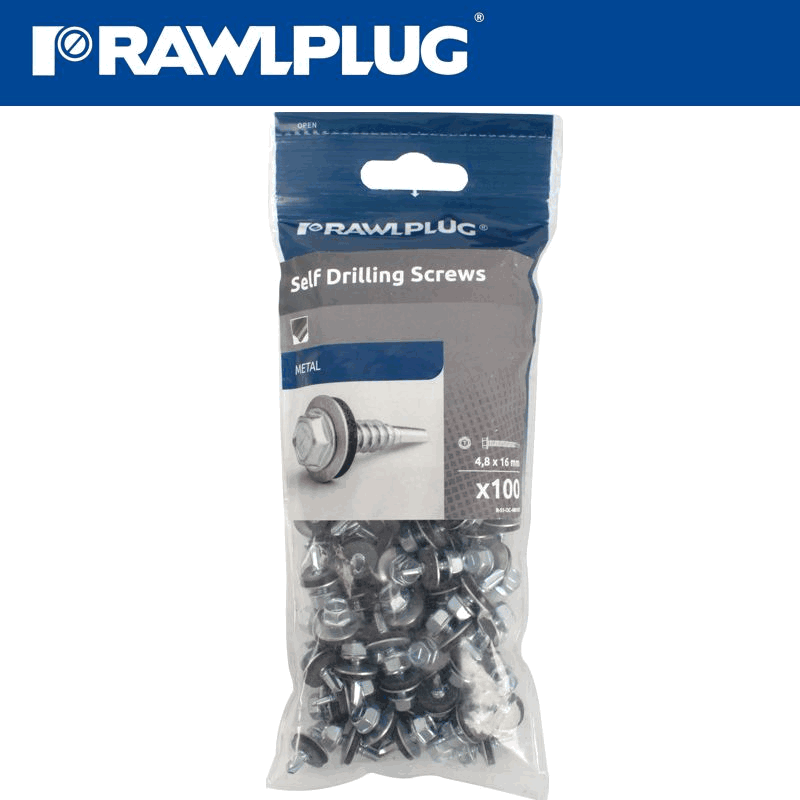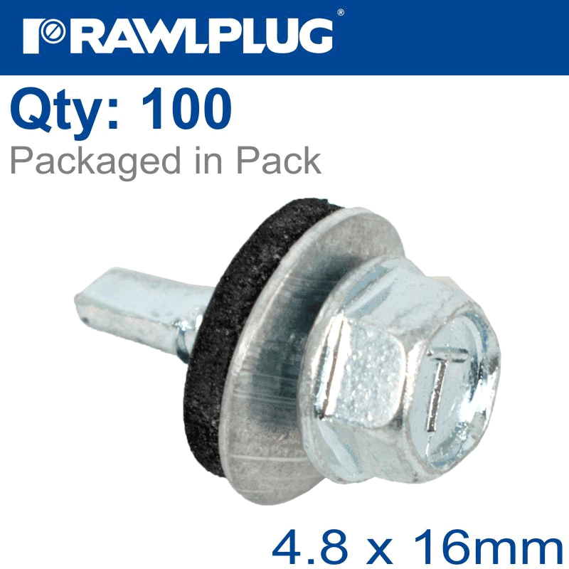 RAWLPLUG Self Drilling Screws 4,8X16Mm With Washer T14, 100Pcs