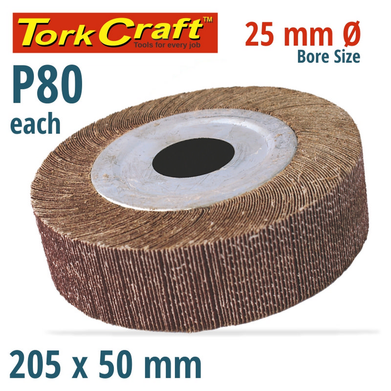 Tork Craft Flap Wheel 205 X 50 X 25mm Bore 80 Grit Per Each
