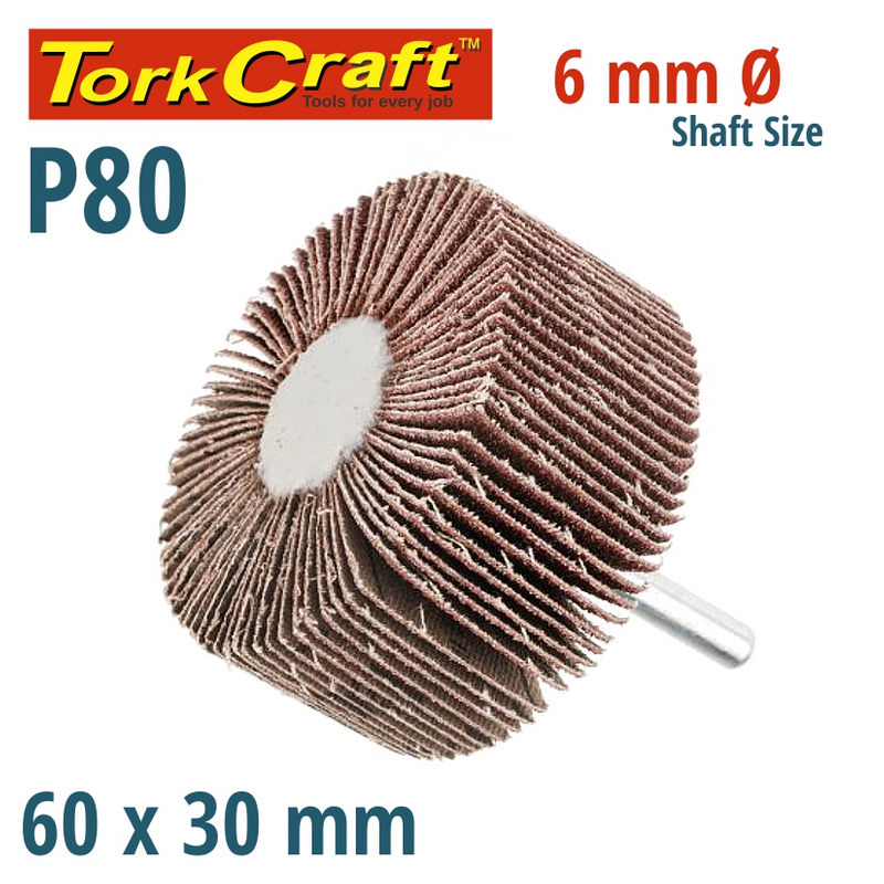 Tork Craft Flap Wheel 60 X 30 X 6mm Shaft 80 Grit Per Each (14 Per Box)