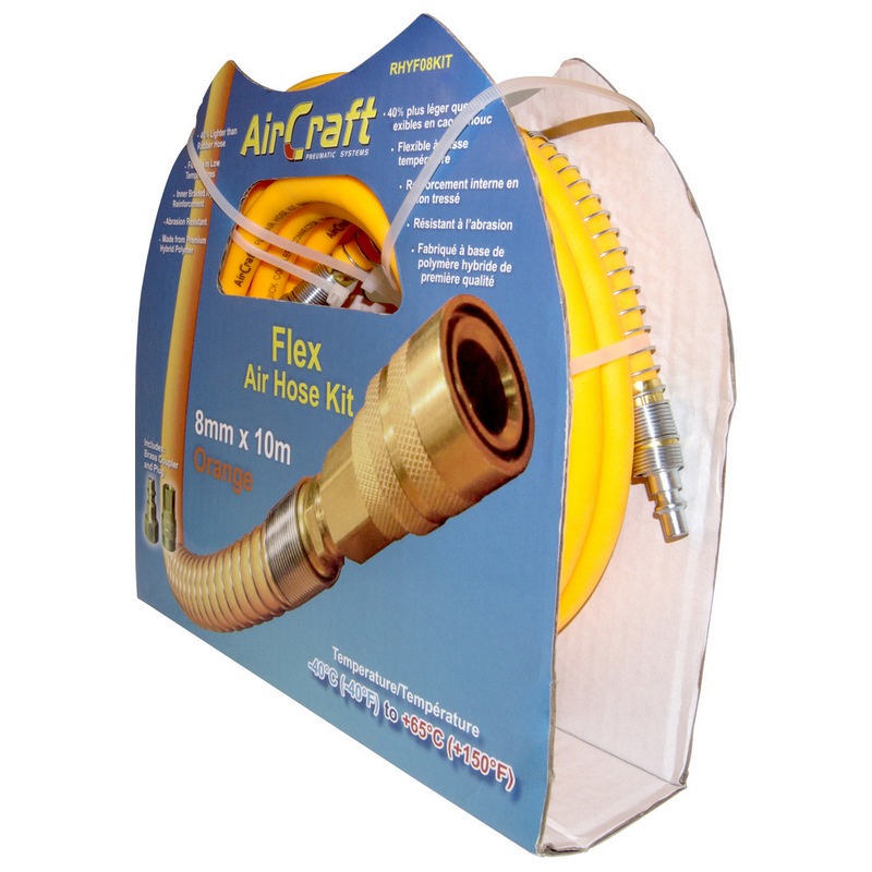 Air Craft Flex Air Hose Kit 8mm X 10m Orange W/Quick Coupler & Connector Yohkon