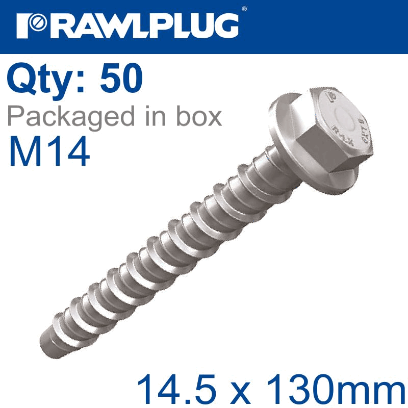RAWLPLUG Concrete Screw Bolt M14.5X130Mm Hex Head Zinc Plated 50/Box