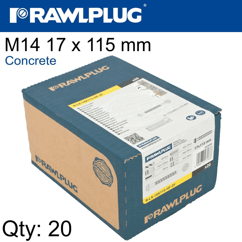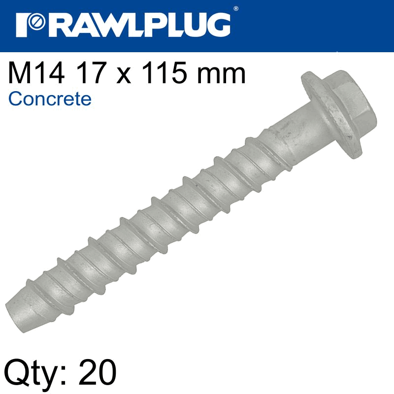 RAWLPLUG Concrete Screwbolt M14 17X115Mm Hex Flange Zinc Fl X20-Box