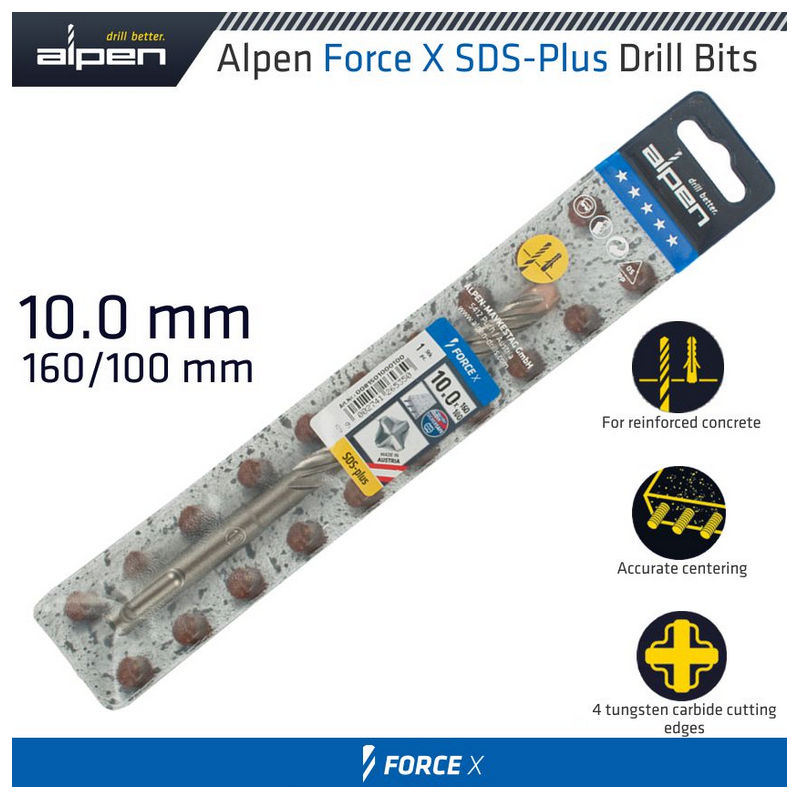 Alpen Force X 10.0 X 160/100 Sds-Plus Drill Bit X4 Cutting Edges