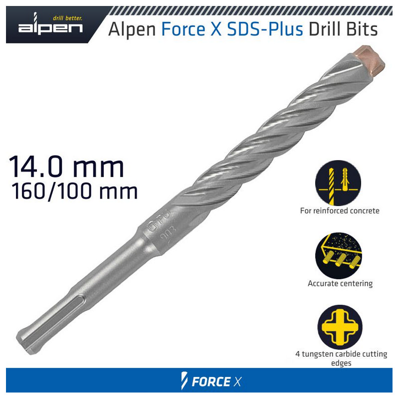 Alpen Force X 14.0 X 160/100 Sds-Plus Drill Bit X4 Cutting Edges