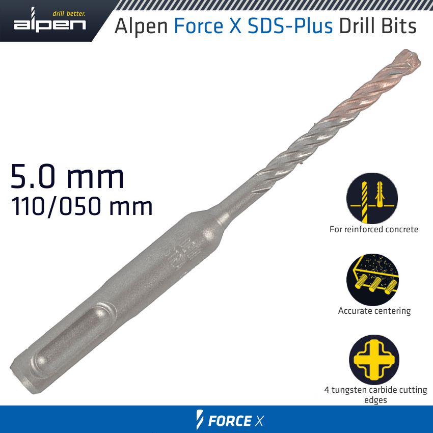 Alpen Force X 5.0 X 110/050 Sds-Plus Drill Bit X4 Cutting Edges - Bulk