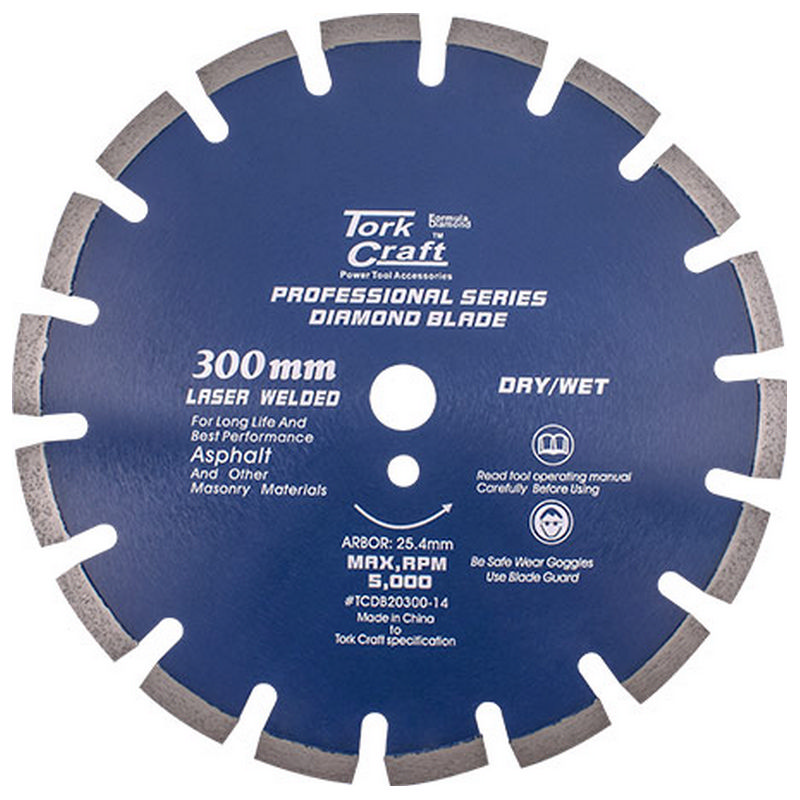 Tork Craft Diamond Blade 300 X 25.4mm Asphalt Laser Welded Segmented Tar
