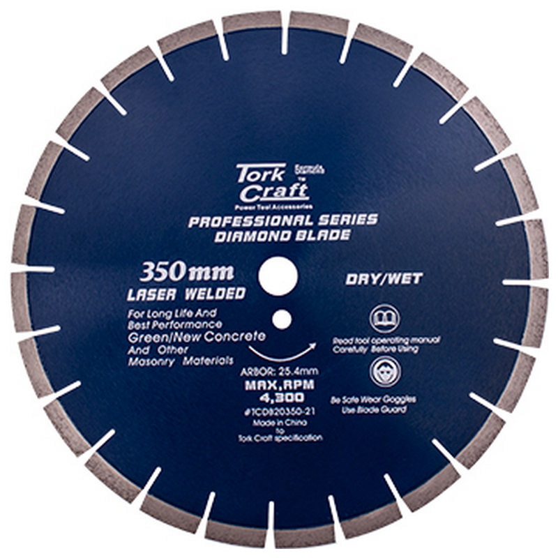 Tork Craft Diamond Blade 350x25.4mm Green / New Concrete Laser Welded Segmented