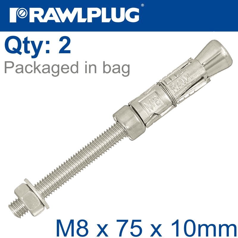 RAWLPLUG Projecting Bolt M8X75X10Mm X2 -Bag
