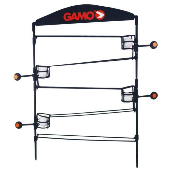 The Gamo Moving Ball Target offers a corrosion resistant powder coated steel construction. It features resettable spinning targets with orange Bullseye stickers included.