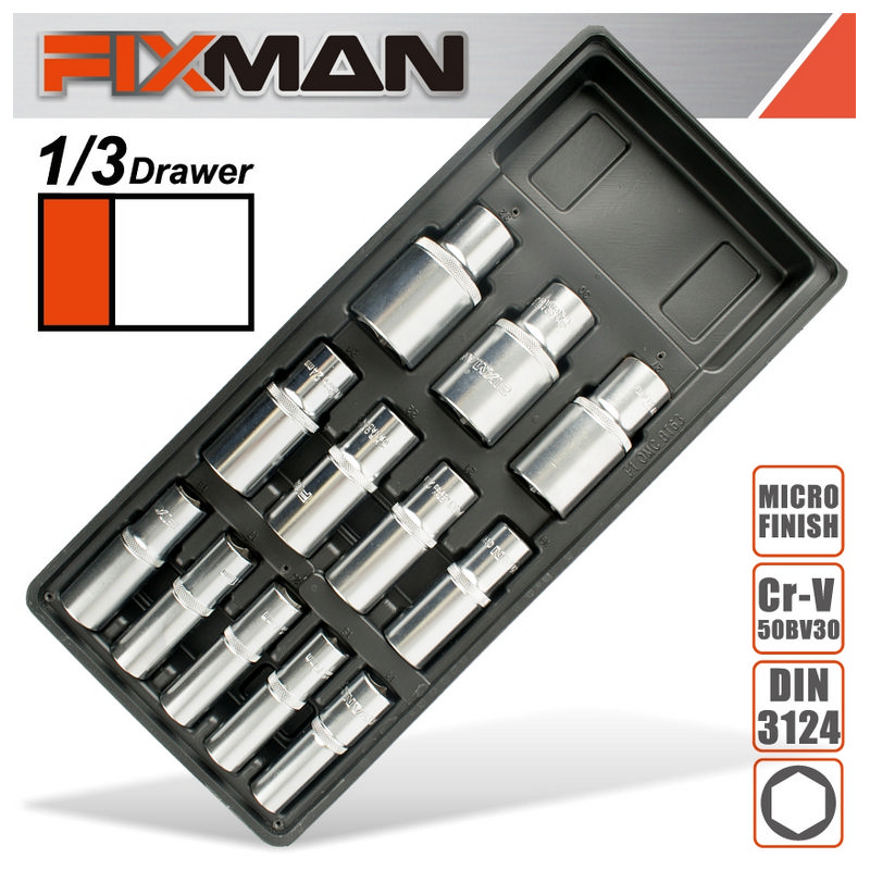 FIXMAN TRAY 12PC 1/2" DRIVE DEEP SOCKETS