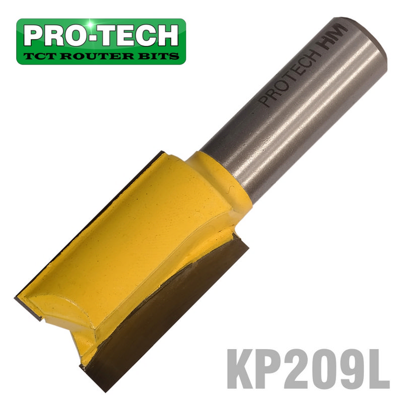Two Flute Straight bit KP208L by Pro-TechIn choosing a straight bit for any application, always select one with the shortest cutting edges and the shortest overall length that will reach the required cut depth. Excessive length intensifies deflection and vibration, which degrade cut quality and lead to tool breakage.