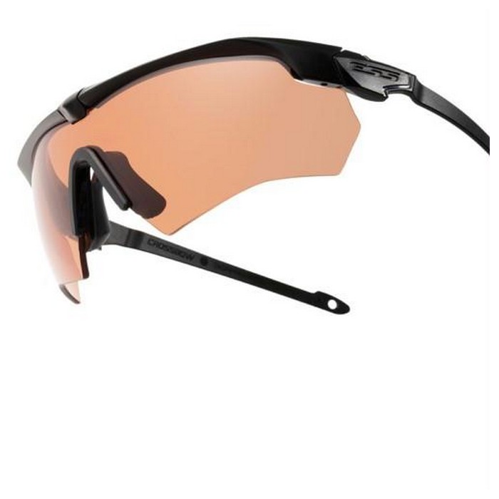 The ESS Crossbow Suppressor is the first spectacle frame designed for use with ear cup hearing protection and communications devices. Featuring Z-Bend Geometry, the frame’s ultra-thin temple arms help keep noise out by minimizing the effect on the padded seal of ear cups. The slim temples eliminate the hot spots and pressure points that commonly occur when normal eyewear is worn under ear cups. The Suppressor frame is compatible with all Crossbow lenses. The 2.4mm Polycarbonate lens feature distortion-free ESSOPTICS and ClearZone FlowCoat technology to combat fogging on the inside and scratches on the outside. The frame’s DedBolt Lens Lock provides quick lens interchange and rock-solid retention under impact. The Crossbow Suppressor 2X Kit includes Two fully assembled black framed eyeshields. One is the Suppressor frame with the Hi-Def Copper lens and the other is the standard Crossbow frame with the clear lens. Also included is the zippered hard case, micro fiber pouch, snap-on elastic retention strap, ESS U.S. Flag sticker and instruction booklet.