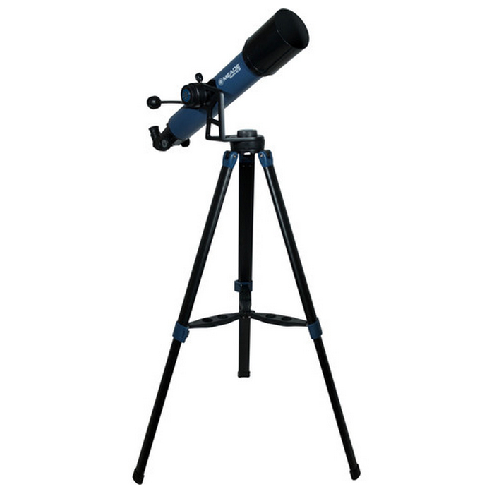 Its manual alt-azimuth mount has slow-motion controls for precise positioning and tracking, with a sturdy aluminum tripod that can be used by a wide variety of users—from tall to small. Three eyepieces provide 23x, 67x, and 95x magnifications with a 2x Barlow lens that doubles the magnification of each eyepiece for a wider range of observing possibilities. A 90° diagonal not only places your head in a comfortable viewing position, but its integrated erecting prism corrects the view for terrestrial use. Meade also includes a smartphone adapter that allows you to capture photos and video through the eyepiece to enjoy, share, and like. With its short optical tube assembly (OTA), the StarPro is extremely portable, and at a weight of just 10 pounds the entire telescope rig is easy to handle by astronomers of all ages.
