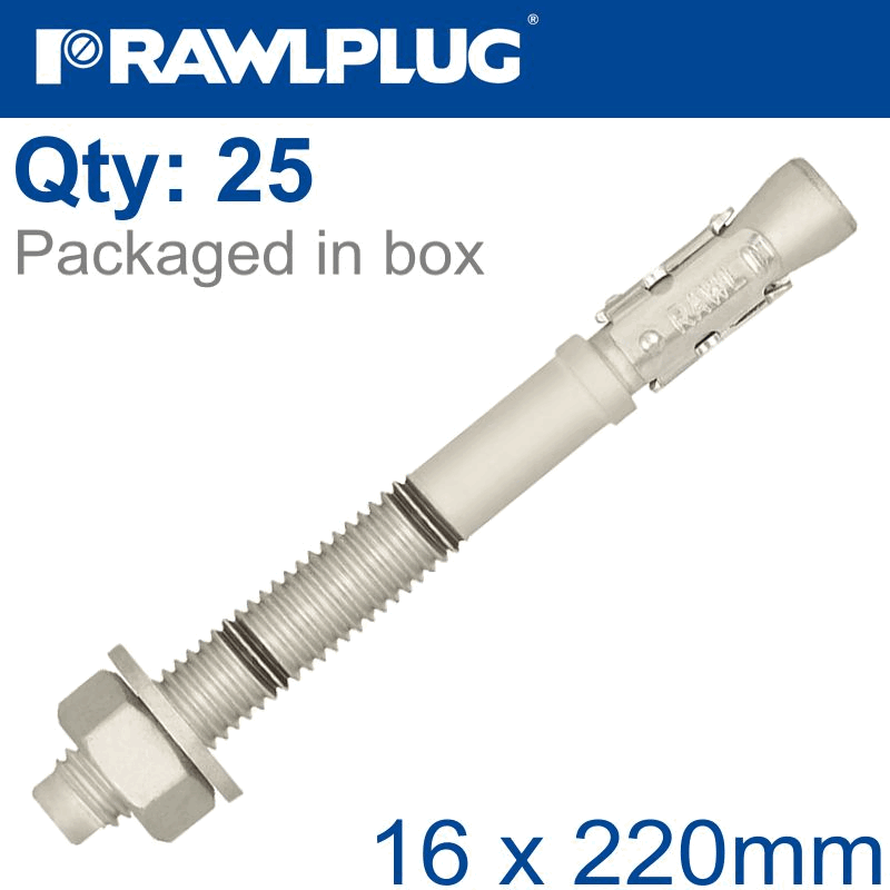 RAWLPLUG Throughbolt 16X220Mm Zinc Flake 25 -Box