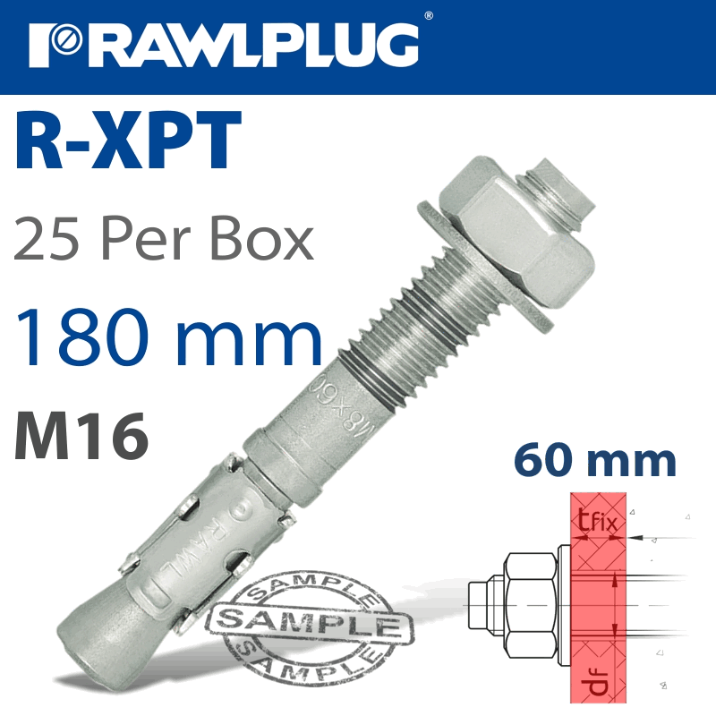 RAWLPLUG Throughbolt M16X180X60Mm X25 -Box
