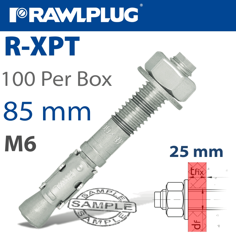 RAWLPLUG Throughbolt M6X85X25Mm X100 -Box