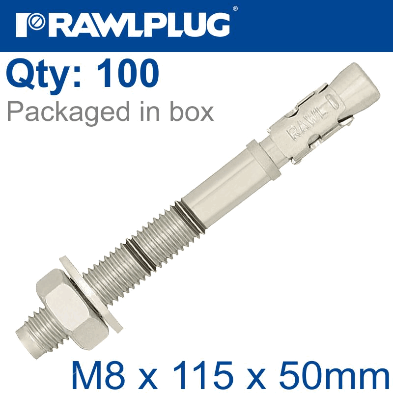 RAWLPLUG Throughbolt M8X115X50Mm X100 -Box
