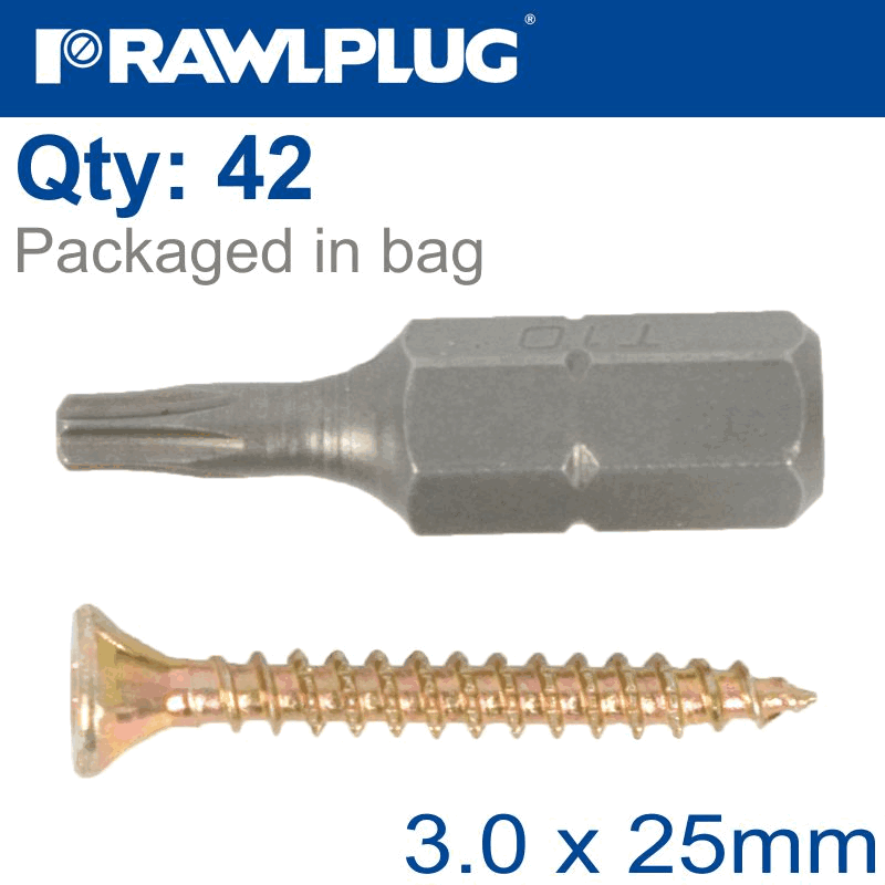 RAWLPLUG R-Ts Hardened Screw 3.0X25Mm X42 Per Bag