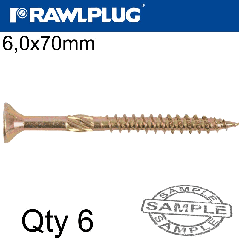 RAWLPLUG R-Ts Hardened Screw 6.0X70Mm X6 Per Bag