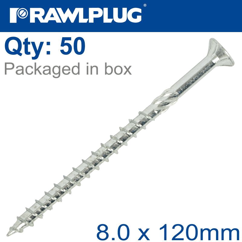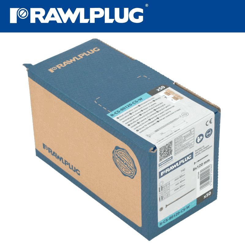 RAWLPLUG Timber Construction Screw 8.0 X 120Mm X50-Box Csk Washer Head Torx T40