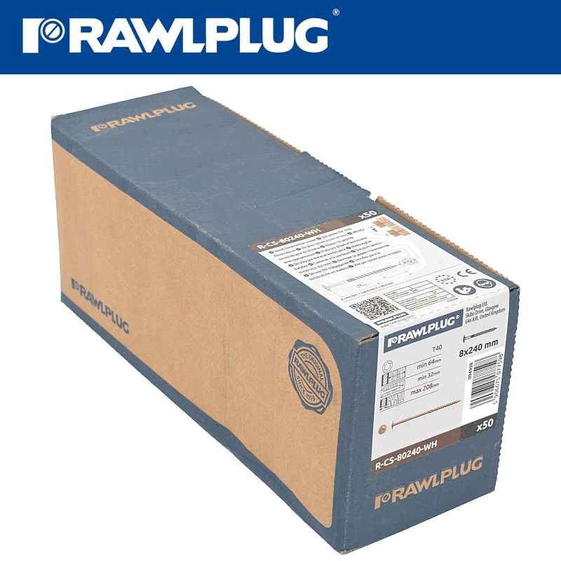 RAWLPLUG Torx T40 Timber Construction Screw 8.0X240Mm X50-Box