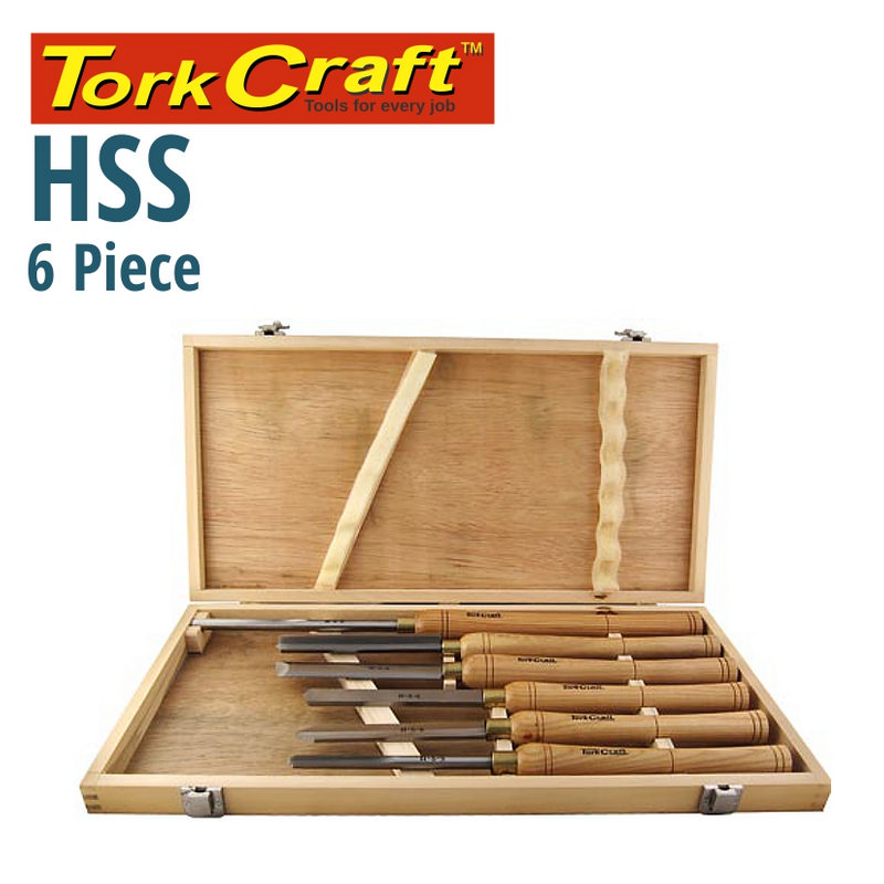 Tork Craft Chisel Set Wood Turning HSS 6 Piece Wooden Case