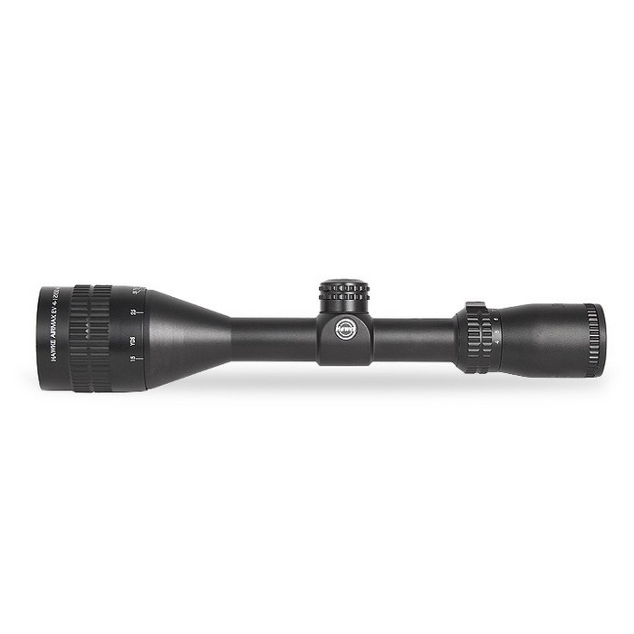 The Hawke Airmax EV 4-12X50MM AO Variable Riflescope is optimized for airguns and features a large 50mm objective, which scoops more light at dawn and dusk. Its fully multi-coated optics, with 16 layers of anti-reflection coatings, increase image resolution, clarity, and brightness.